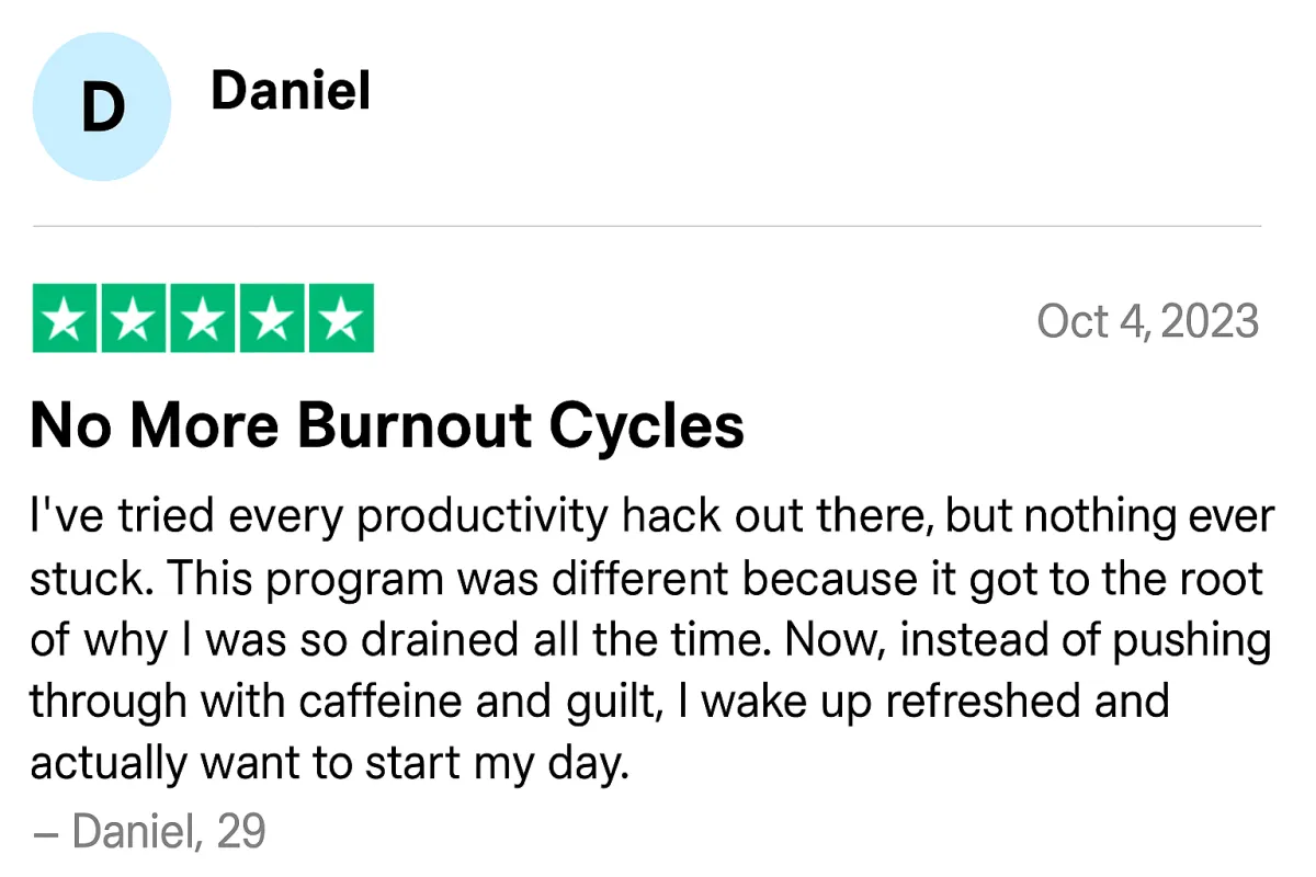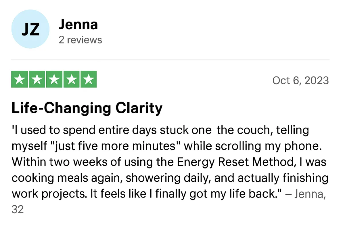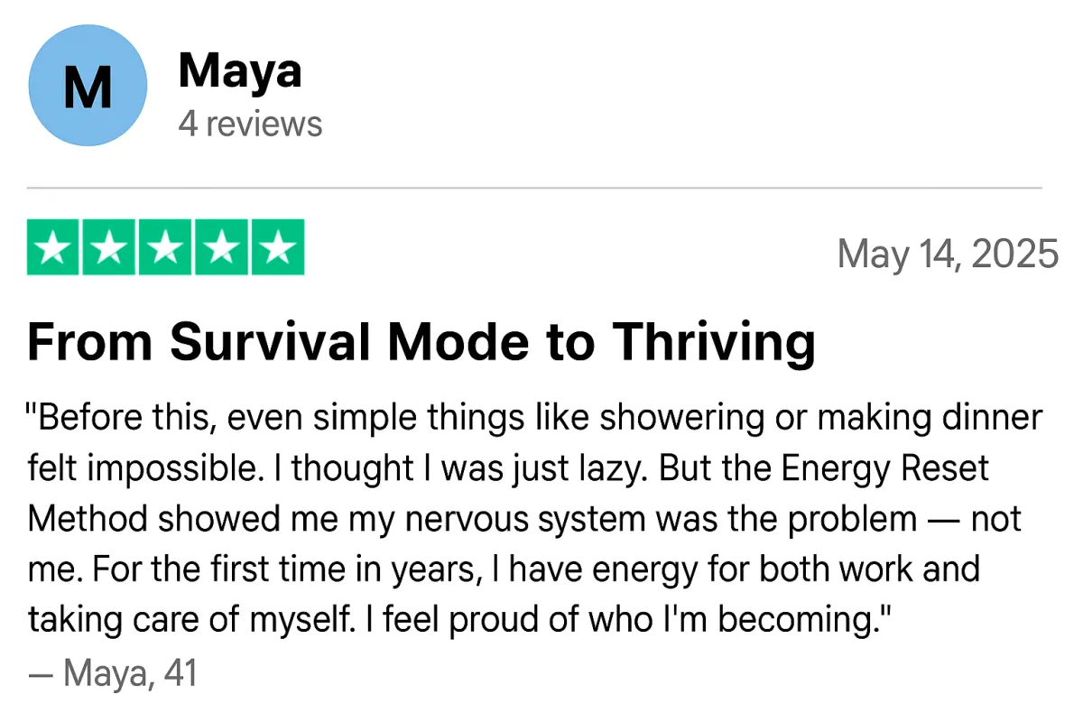 A: Most productivity advice assumes you have baseline motivation and energy to work with. The Energy Reset Method specifically addresses nervous system dysregulation - the root cause of why you can't get started in the first place. We're not asking you to force yourself through another system; we're helping you restore the biological capacity for motivation.